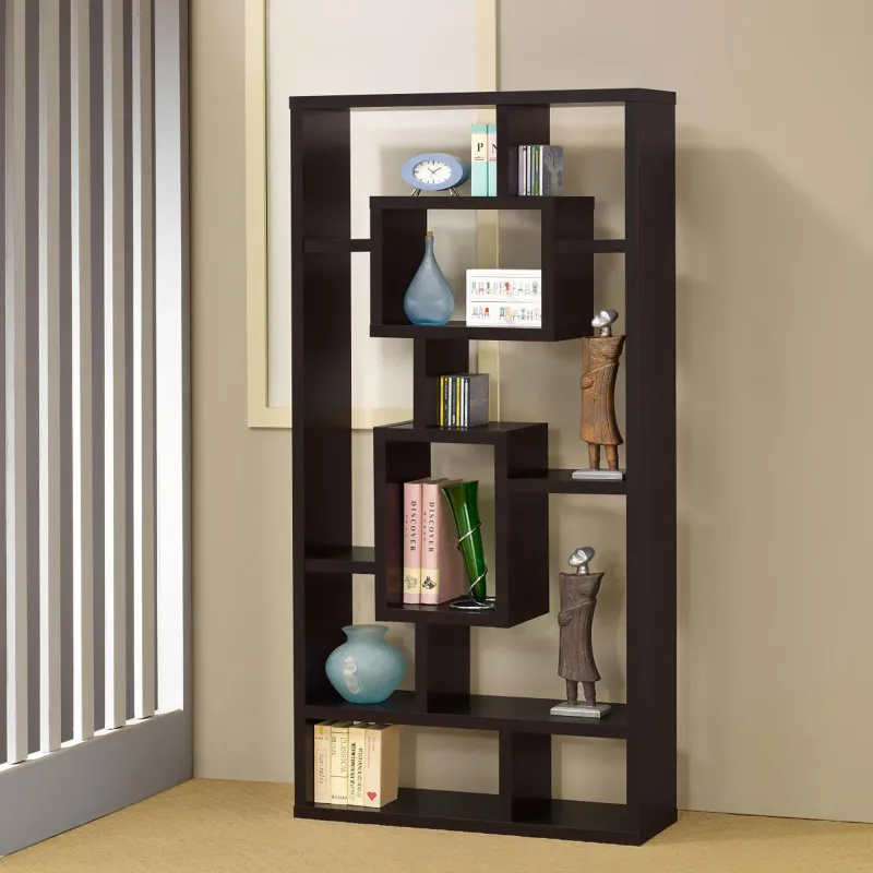 Featuring ten shelves of different shapes and sizes, this bookcase offers a harmonious blend of fashion and functionality, allowing for versatile display and storage options for various items