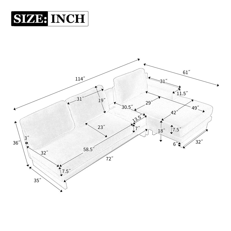 Two USB Ports and Two Power Sockets - The sectional sofa comes with two USB ports and two power sockets to provide long-term power so you can play games and watch videos on it without leaving the comfort of your seat.