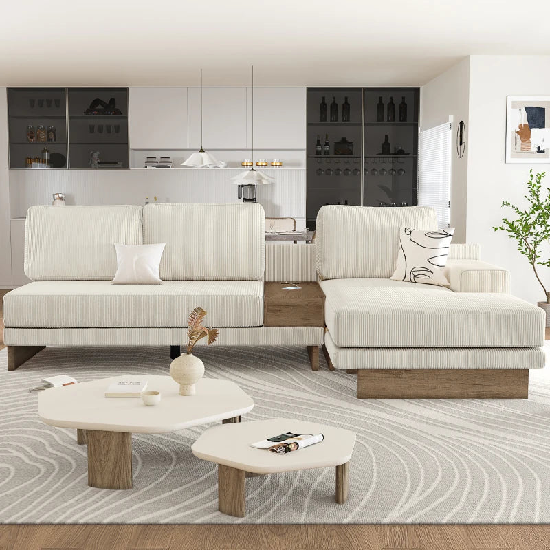 Hidden Storage Drawer - This sectional sofa features a storage drawer with unique style, and it is ideal for keeping essentials such as TV remotes, cell phones, or books within easy reach. Plus, this drawer can be used as a coffee table to place items.