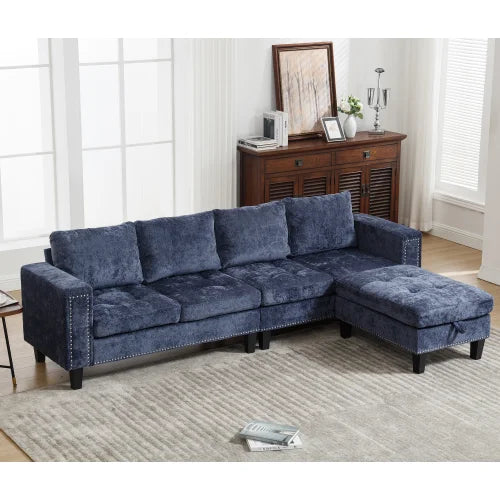 [Storage Seat Design]The size of the hidden storage space the footstool 33 W x 25 D x 6.99 H (inches). This feature of the modular couch can solve some of your storage concerns.