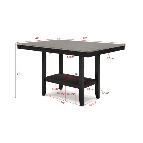 Counter HT. Table: 42" X 60" X 37"H