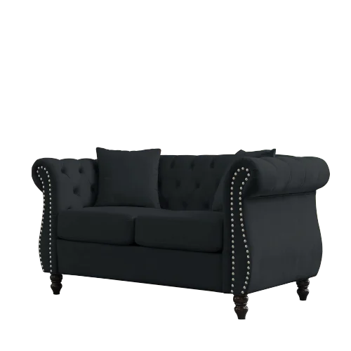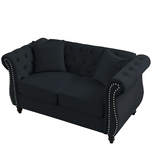 Sturdy and durable. The frame of the sofa is made of solid wood for added sturdiness and durability. With comfortable foam, soft cushions supported by a curved spring structure and tufted buttons on the back and arms, this sofa is perfect for those who want to rest after a busy day.