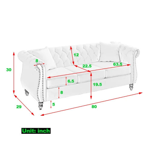 Overall dimensions. Sitting height 19.5 inches, sitting depth 22.5 inches, sitting width 63.5 inches, soft doll cotton and foam, ergonomic and comfortable sitting position, soft seat surface, you can lie down anywhere on it, watch TV or take a nap, relax all day in the living room.