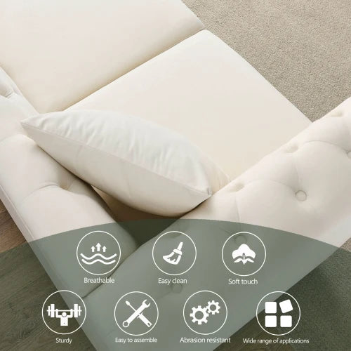 Sturdy and durable. The frame of the sofa is made of solid wood for added sturdiness and durability. With comfortable foam, soft cushions supported by a curved spring structure and tufted buttons on the back and arms, this sofa is perfect for those who want to rest after a busy day.