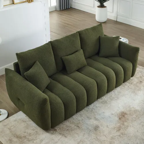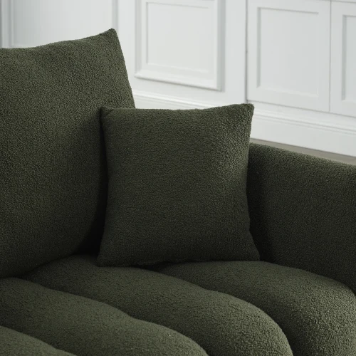 The sofa is designed with smooth and clean lines, giving it a modern minimalist feel. The modern sofa is designed with teddy velvet material, which is comfortable to the touch and easy to care for.