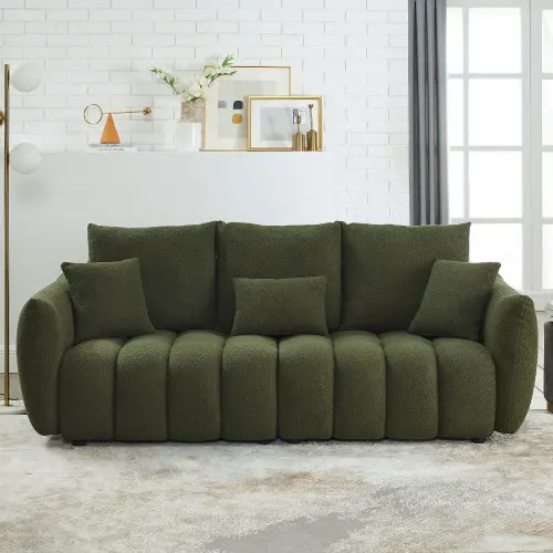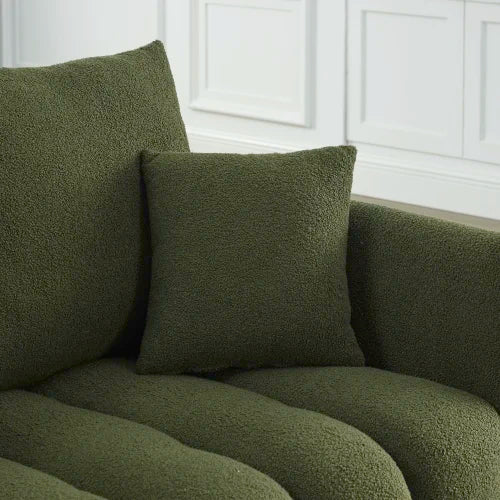 The modern sofa is made of soft teddy fabric plus foam padding to provide you with maximum comfort. Sitting on it, you will be surrounded by ultra-soft plump backrests with optimal comfort angles, making you feel like you are sitting on a cloud. Add this sofa to make your living room space more sophisticated and elegant.