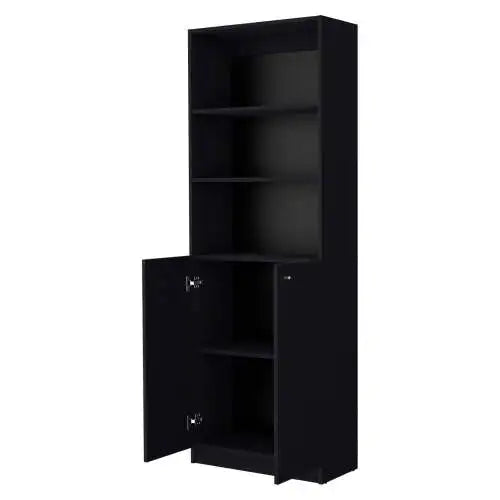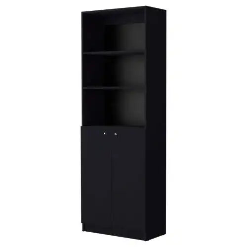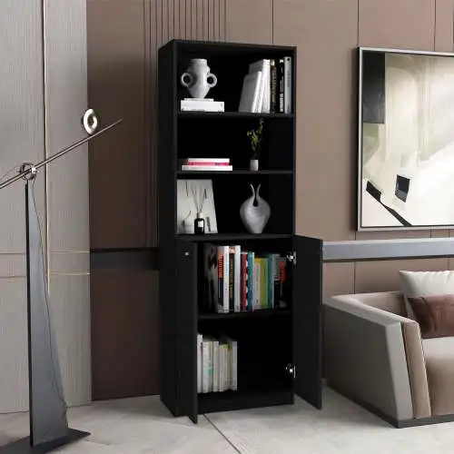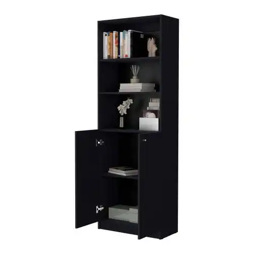 Discover the epitome of modern elegance and practicality with the 2-door bookcase, featuring a unique double-door configuration unveiling two finely crafted shelves for cherished items, complemented by three open shelves above for ample display space of literature, decor, or keepsakes. It promises to be the centerpiece of any room it graces, combining style with functionality effortlessly.