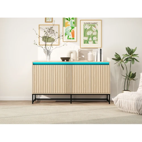 Elegant and natural wood color with black metal feet, classic timeless, free adjustable LED and exquisite carving with, break the monotonous dull.