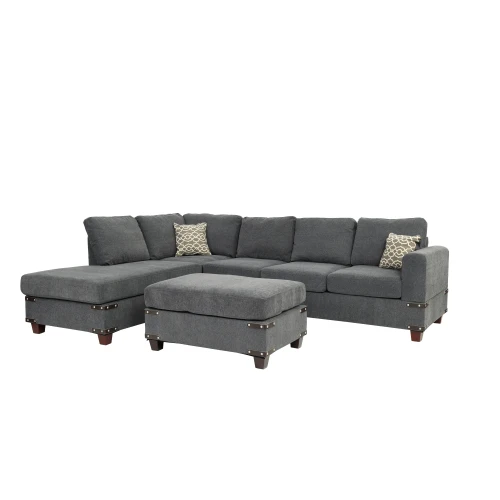 Listing Include : 3pcs Reversible Sectional Sofa (Sofa, Reversible L/R Chaise and Cocktail Ottoman) Only.