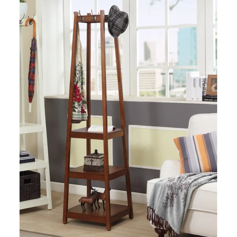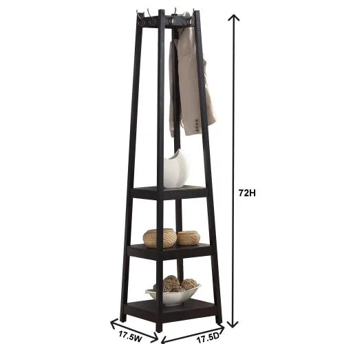 Espresso Finished Wood Coat Rack with 3-tier Storage Shelves.