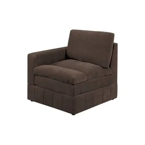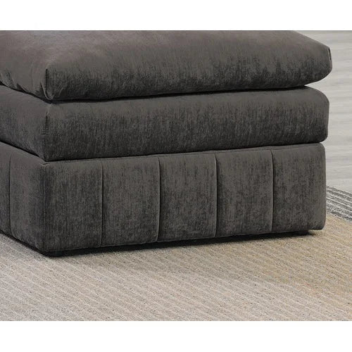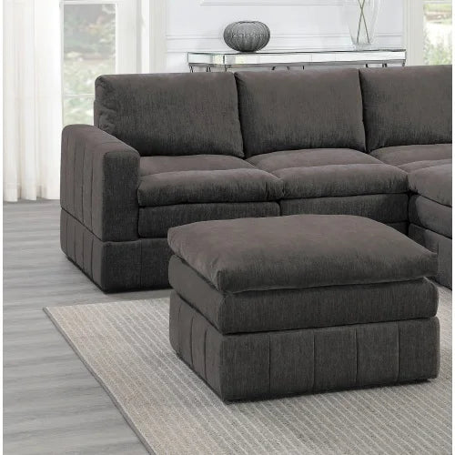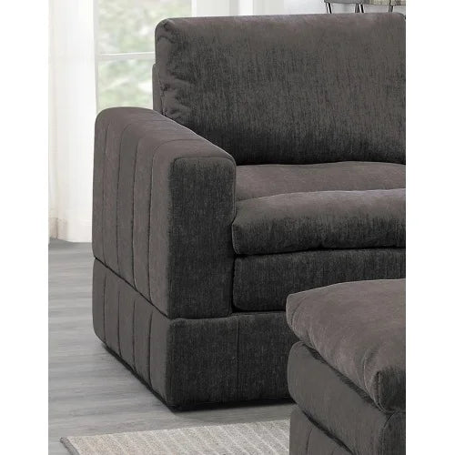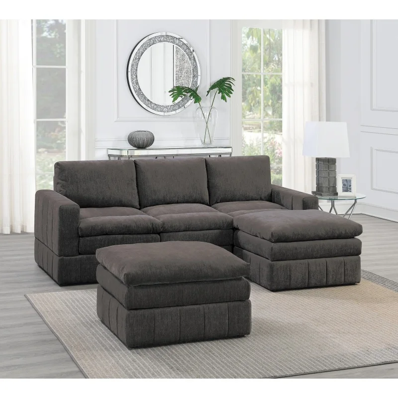 A triple layer cake comes to mind with this extraordinary designed modular sectional set. Each piece is crafted with three tiers topped with plush pillow-top seating and back support to match. Go straight to the moon with this 5-piece set that provide comfort and style that is out of this world. Explore your options with a traditional sectional or try a loveseat, sofa and ottoman combo to suit your style and comfort. This set includes two of each of the following: Right/Left one-arm chair, armless chair, and ottoman. Available in a smooth suede-like fabric in granite and mink.