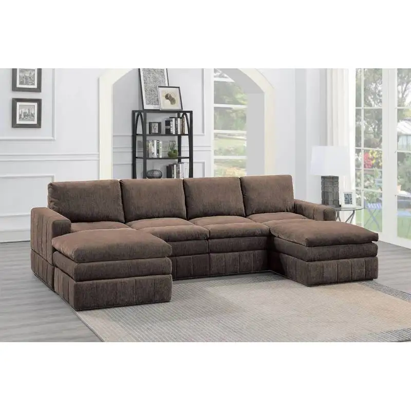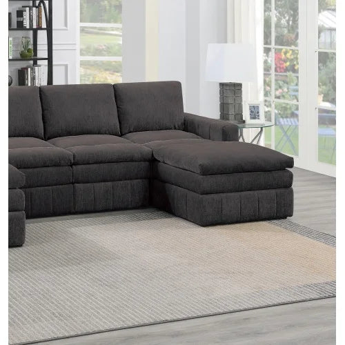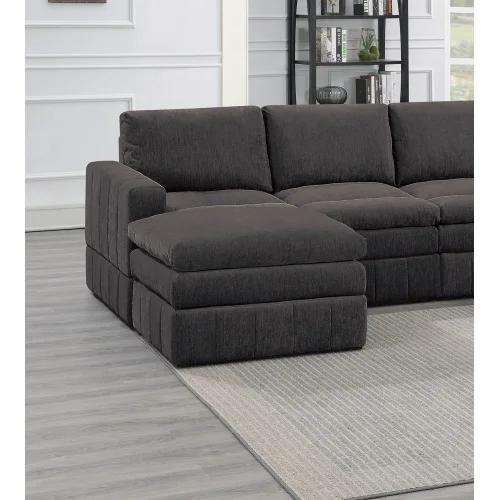 A triple layer cake comes to mind with this extraordinary designed modular sectional set. Each piece is crafted with three tiers topped with plush pillow-top seating and back support to match. Go straight to the moon with this 6-piece set that provide comfort and style that is out of this world. Explore your options with a traditional sectional or try a loveseat, sofa and ottoman combo to suit your style and comfort. This set includes two of each of the following: Right/Left one-arm chair, armless chair, and ottoman. Available in a smooth suede-like fabric in granite and mink.