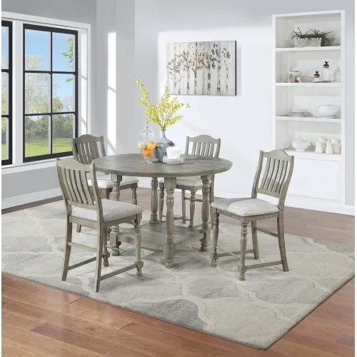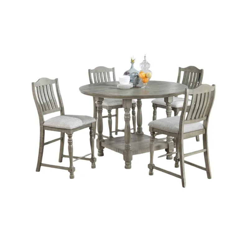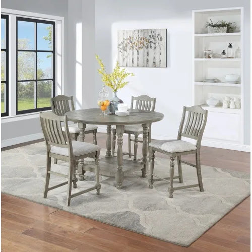 Listing Include: 5pc Dining Set (Round Counter Height Dining Table And 4x High Dining Chairs) Only.