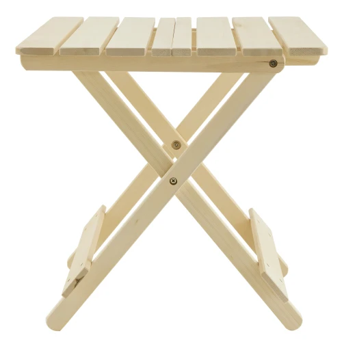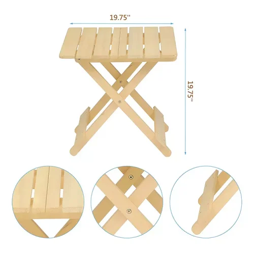 This wooden folding table allows for a robust and sturdy structure. Constructed from solid cypress wood and strong X-shaped frame, it offers exceptional strength and stability. The small side table is an ideal place for your drinks, books, and other small items.