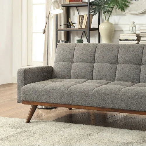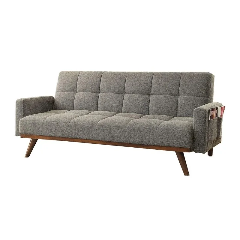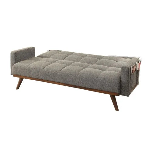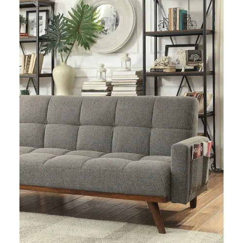 Futons don't always look like futons. This stylish piece has all the angular charm of a mid-century modern sofa with the functions of a relaxing futon. The straight lines of the tufted back and track arms make the angled legs stand out for that classic design aesthetic. Small pouches in the arm rest ensure you have a safe place for the remote between sleeping and sitting periods. This lovely little piece can be the perfect addition to a lounge space or bedroom, without sacrificing any sense of style.