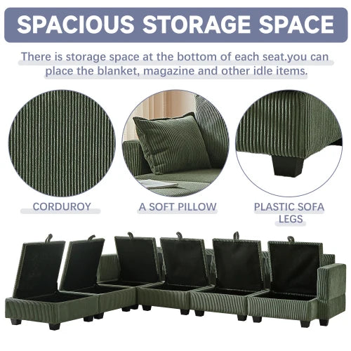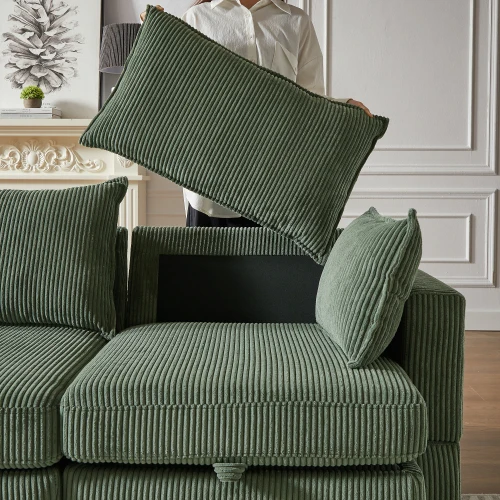 Every sectional sofa seat has an extra Storage space.The capacity of sectionals is comparable to a small wardrobe, it is large enough to put children's toys, blankets, pillows, decorations, and various sundries to make the room look neat and clean.