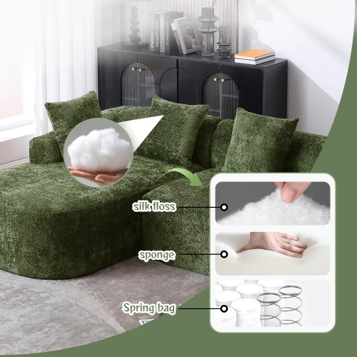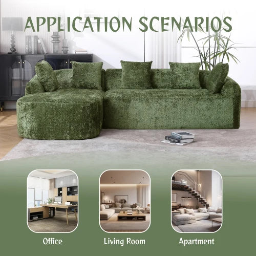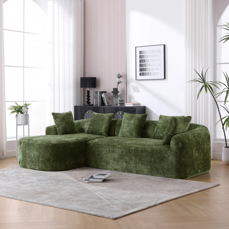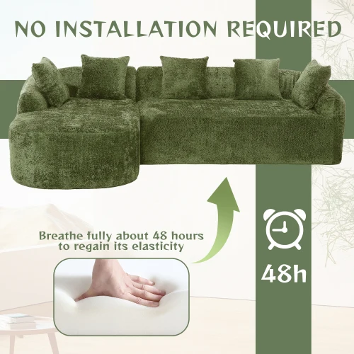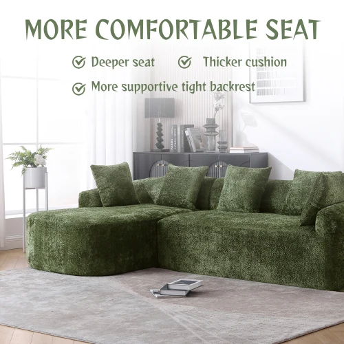 L Sofa with wider armrests, deeper seat depth, and raised backrest provide a more comfortable seating experience. The 5 small pillows included for free can be cradled in your arms or leaned against your back, allowing you and your family to relax even more. The super wide sofa gives every part of your body plenty of space to relax.