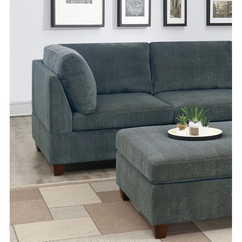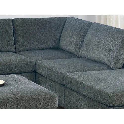 Anchor your style with this ultra soft and spacious 6-piece sectional sofa set. Upholstered in chenille, this lounge unit features a modular design sofa that versatile that conforms to a chaise or standard sectional. This set also includes a cocktail ottoman. Available in grey or tan.