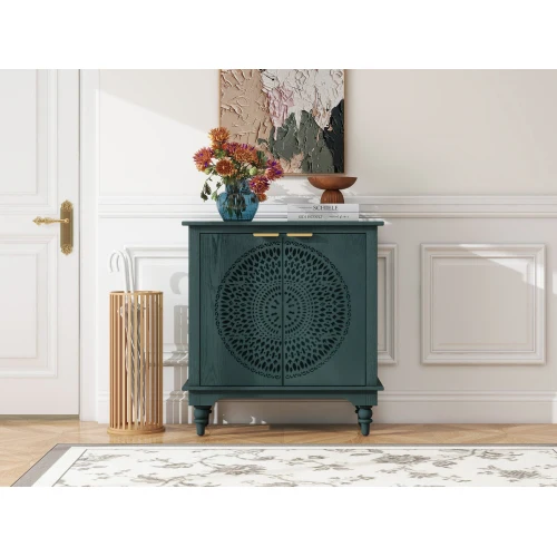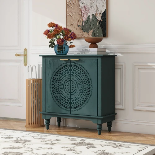 The finish is carved with exquisite hollow pattern, decorative, but also makes the internal space more breathable and easy to view the internal collection.