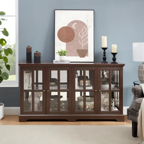 Elegant Design:The 4-door glass antique display cabinet features a classic style with grid doors, making it a perfect addition to enhance any living space while showcasing your precious collectibles.
