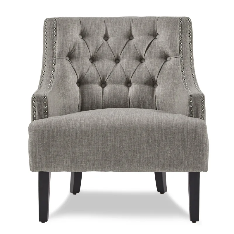 High polish nailhead accents and defines the profile of the Charisma Collection. This modern traditional teal fabric-covered accent chair provides a stylish, yet functional addition to your home. The chair is offered in 3 additional distinct colors: chocolate, taupe and indigo.