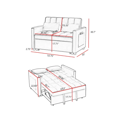 adjustable back to switch from sofa to a comfy bed in seconds.Multiple