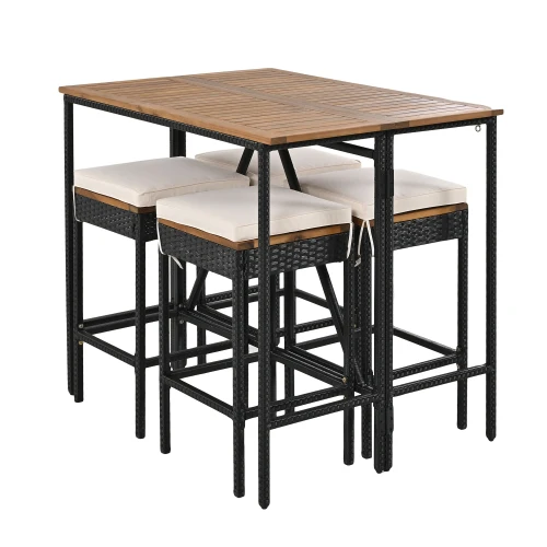 [Fashion Structure] This wicker bar set offers great comfort in a minimalist style combining wicker and acacia wood. Durable and rust-proof accessories will last your for years to come.