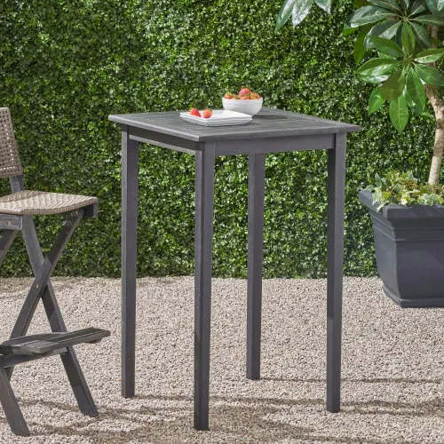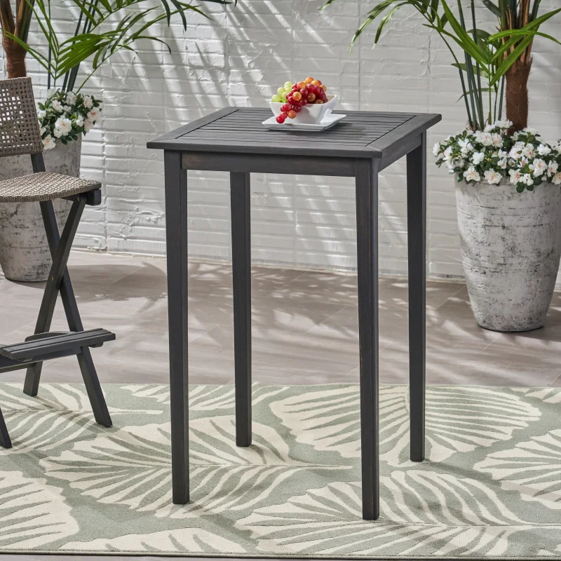 MINIMALISTIC DESIGN: Featuring a square silhouette and a neatly slatted table top, our bar table offers an natural look that showcases its smooth design. Finished with slim, tapered legs, our table offers a simplistic yet exquisite style.