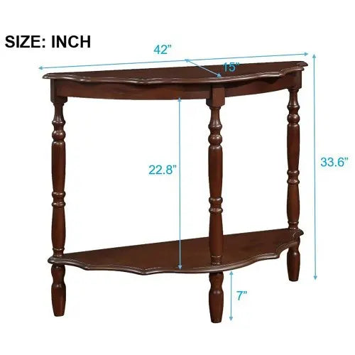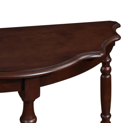 [Unique Design] The half-moon design of this table combines clean lines but lots of details. Layer design at the edge of the tabletop and cloud-like edges add romance to this table.As living room furniture, this farmhouse console table is neutral enough to go with any of your home decors. You could use this small entryway table to display family pictures, vases, lamps, etc.