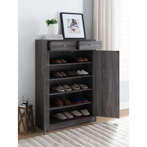 Shoe Cabinet, Two Door Storage Cabinet with Two Drawers, fits 15 Pair of Shoes- Distressed Grey