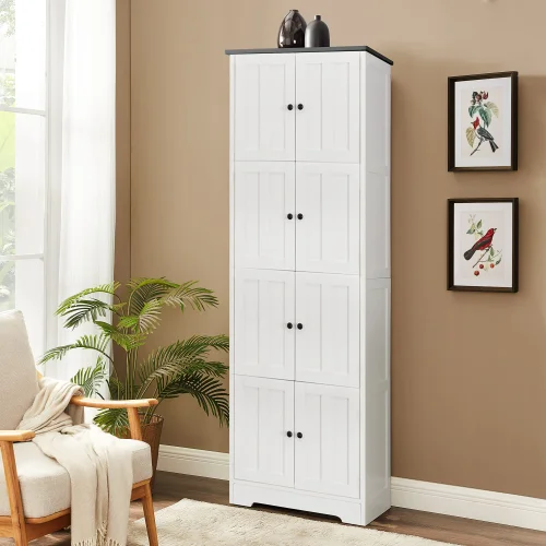MEET MULTI-PURPOSE: The chic white surface is decored with neat lines design, providing a modern and chic storage cabinet for your exquisite home. Measure 24"(L) x 12.8"(W) x 72.4"(H), this size is also an ideal choice for small spaces like garages, kitchens, or bathrooms to add a clever storage solution. Large capacity but take few rooms.