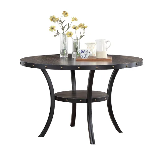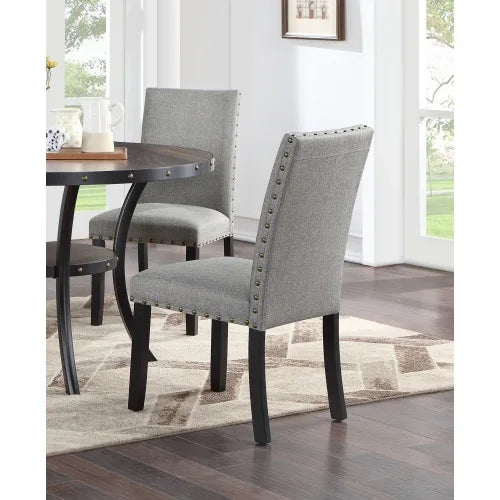 Description:- This Round Dining Table is a perfect addition for smaller dining spaces. The table will become the focal point of your dining experience, featuring a nail head trim and bottom storage. Pair it with the matching Dining Chairs. The comfortable padded back cushioned Dining Chair is designed with luxury in mind. This dining chair features a nail head trimming finish wrapped around the frame. Product Dimensions:- Table : 48"DIA x 30"H And Side Chairs - 19" x 25" x 38"H... Simple assembly require.